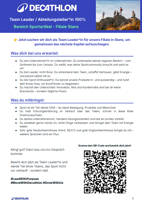 Teamleader*in / Abteilungsleiter*in Sportartikel (m/w/d)