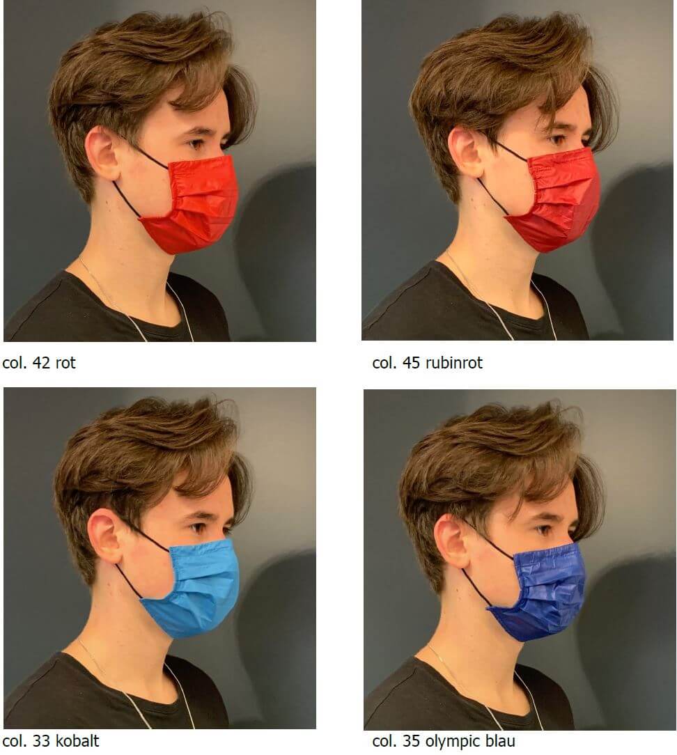 Die Masken werden in Vorarlberg aus sehr hochtechnischen Stoffen, die Sie von Ihrer Lieblings-Outdoor-Performance Bekleidung kennen, unter Einhaltung strenger Qualitätsrichtlinien, hergestellt. Die Masken werden in verschieden Farben angeboten und werden mit einem praktischen Beutel geliefert. Detaillierte Informationen entnehmen Sie bitte dem beiliegenden Schreiben im Anhang.