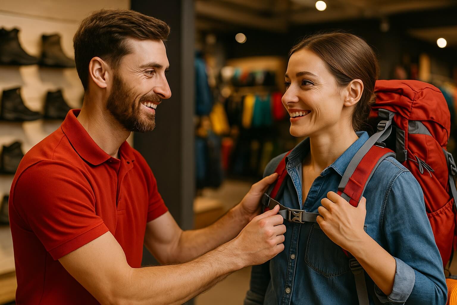 Im Fachgeschäft wird der Rucksack nicht nur gezeigt, sondern erlebt. Während auf dem interaktiven Tisch das Innenleben, die Funktionen und Tragesysteme digital sichtbar werden, steht eine Verkäuferin daneben, die genau spürt, ob der Kunde zögert oder bereits überzeugt ist. Sie hört zu. Sie fragt nach. Und sie reagiert, nicht mit Algorithmen, sondern mit Erfahrung, Intuition und echter Aufmerksamkeit.