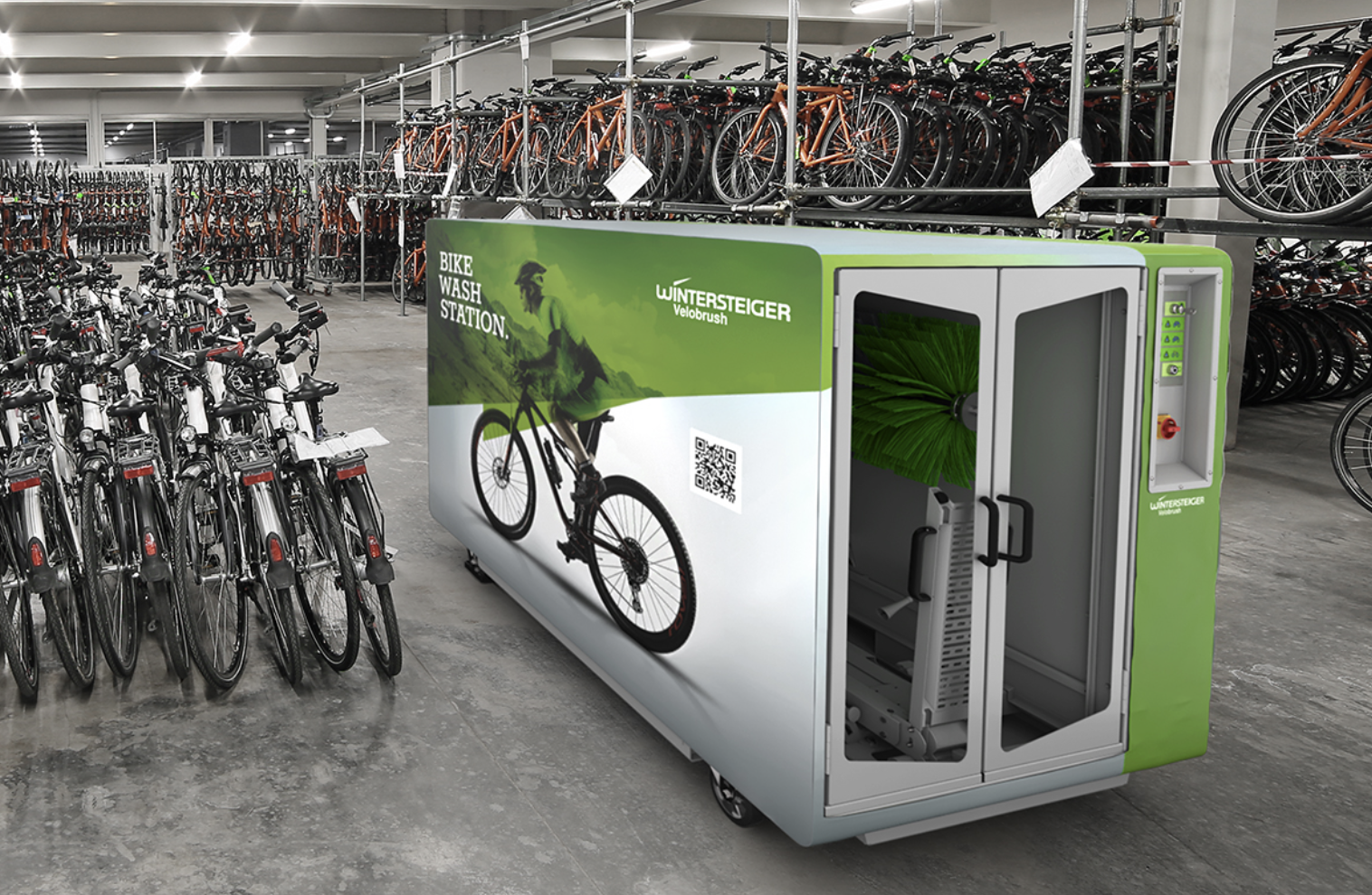 Fahrradkomponenten, die Elektronik bei E-Bikes und empfindliche High-Tech Rahmen aus Karbon verlangen eine ausgesprochen sanfte Reinigungstechnik. Daher werden qualitativ hochwertige Fahrräder bisher immer noch bevorzugt manuell gereinigt. Mit der WINTERSTEIGER Velobrush können ab sofort alle Arten von Fahrrädern auf Basis von Niedrigdruck und sanfter Bürstentechnologie schonend gereinigt werden! Das spart Zeit und erleichtert den Reinigungsprozess – in der Service-Werkstätte und im professionellen Fahrradverleih.